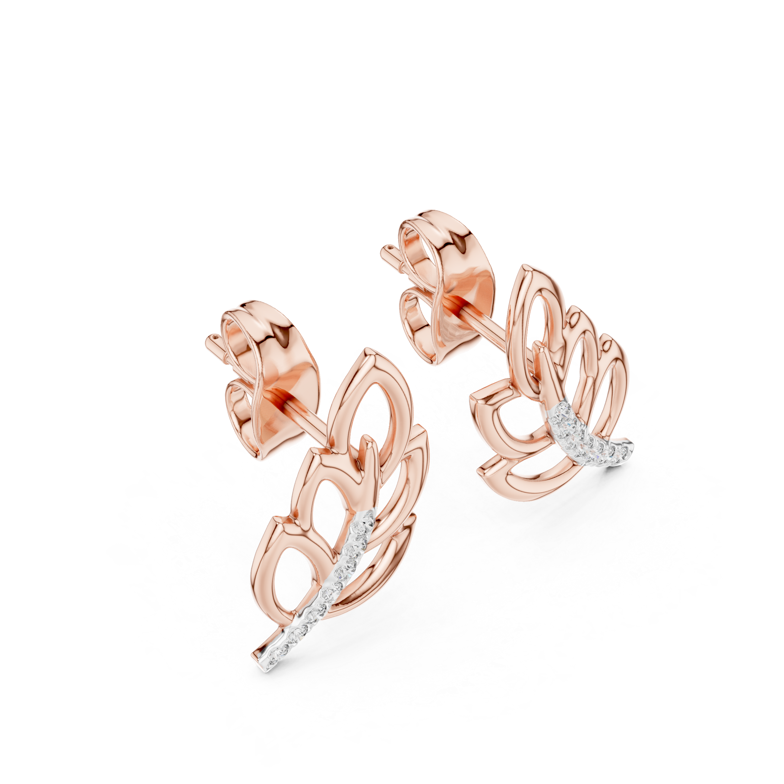 925 Sterling Silver Leaf Diamond Stud Earrings for Women