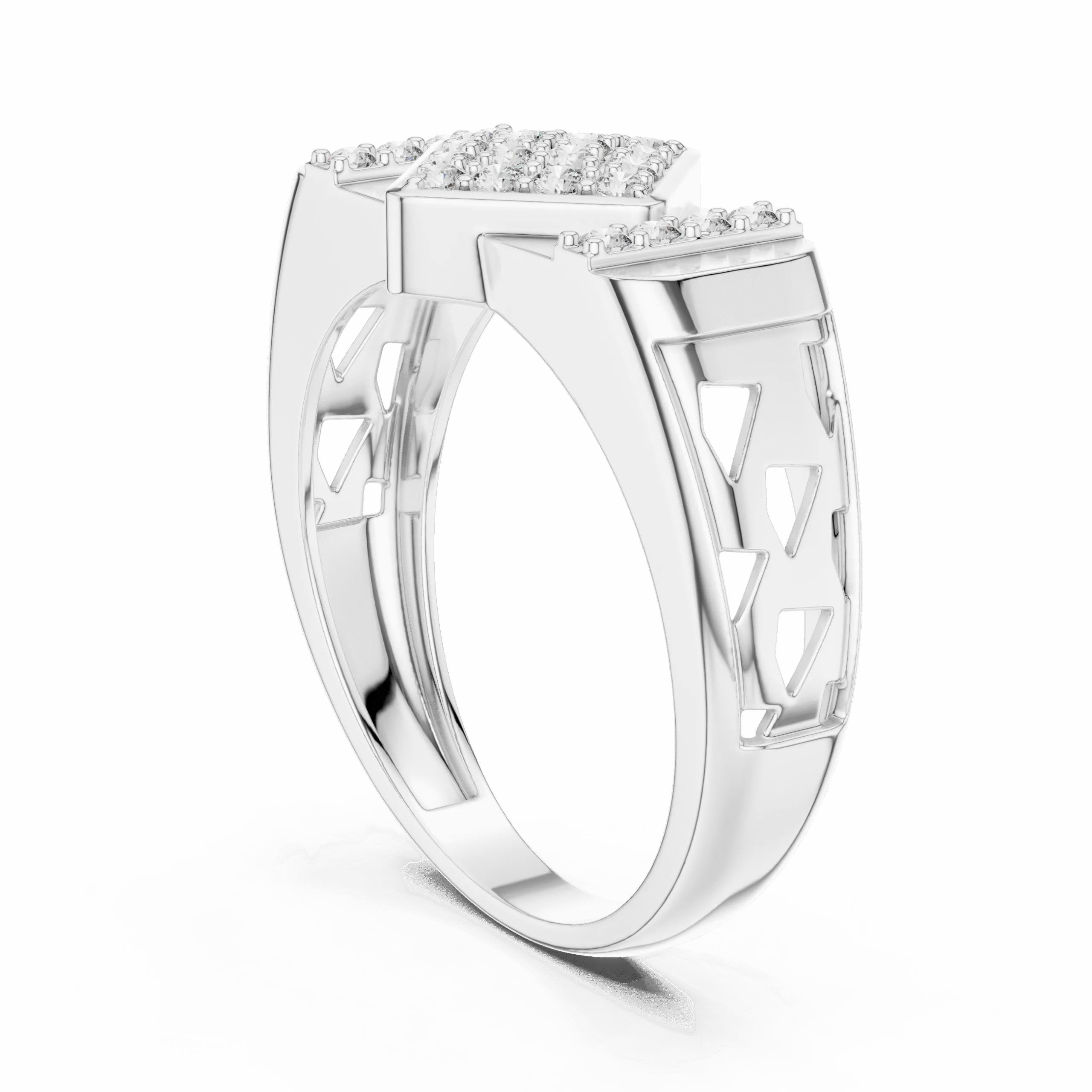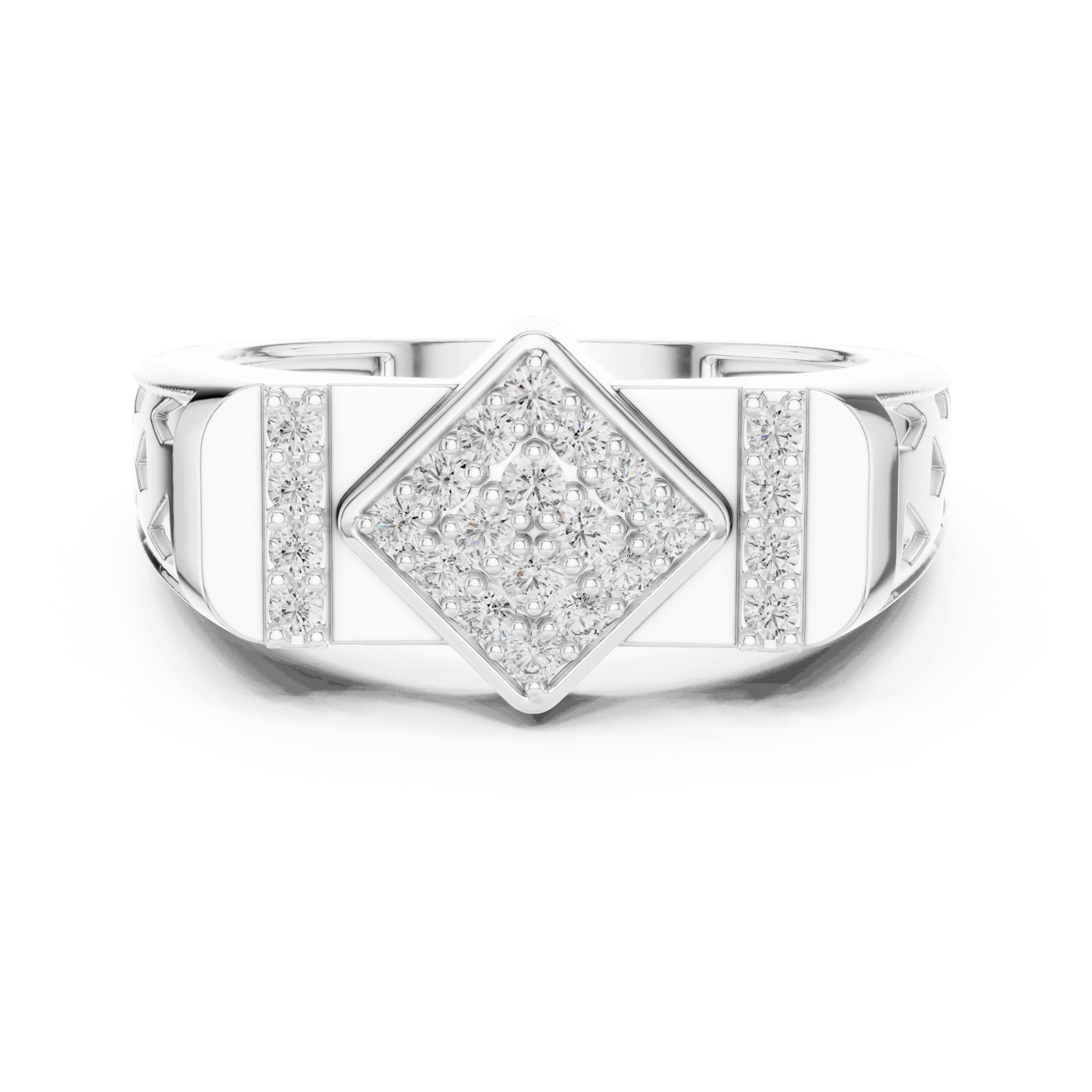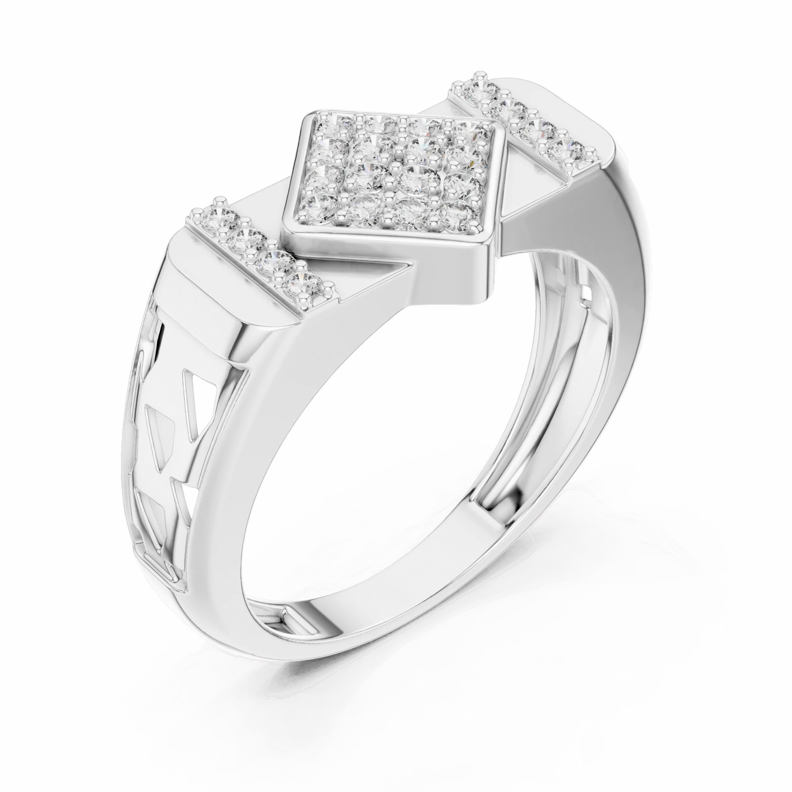 Make a bold statement with the LEDS Wide Band Diamond Ring. This contemporary design, crafted in heavier 925 Sterling Silver, features a striking rectangular pattern and is studded with 24 natural diamonds (0.348 ct TDW). Ideal as a statement ring, cocktail ring, or even a sleek men’s band. Available in classic Silver, elegant Rose Gold Plated, and luxurious Gold Plated finishes.